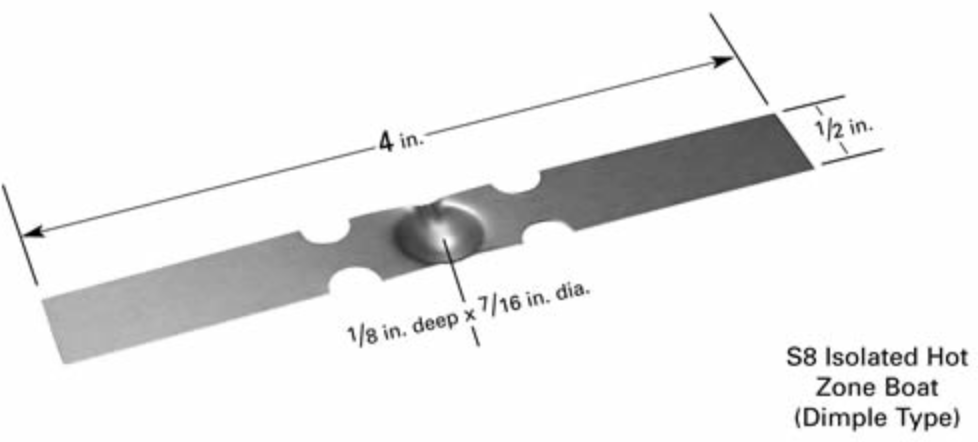 Boat Sources model S8A in W, Ta and Mo. Volume: 0.3cc