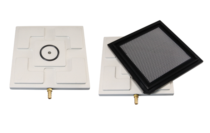 Applying vacuum to the tray puts it in release mode allowing samples to be removed easily without prying or application of force.