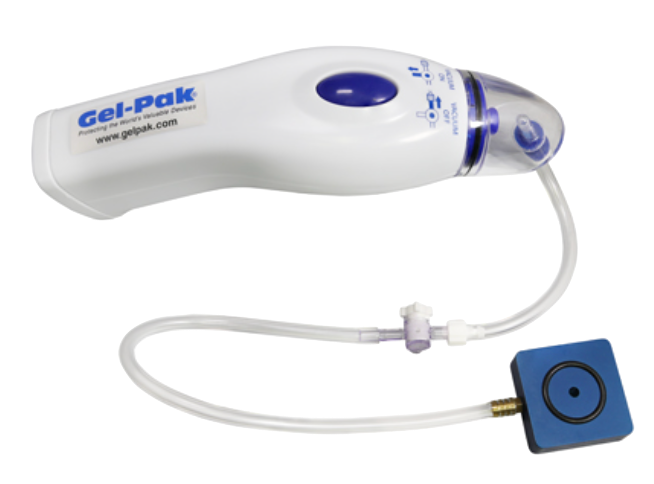 For both model you can use the VP24 Vacuum Base. It can be used with the Gel-Pak® PortaVac, as well as any suitable vacuum source, as it has a barbed fitting for 1/8" I.D. hose.