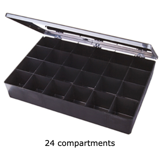| 24COMP757B | 324 x 216 x 54mm | 24 compartment 52 x 52mm |